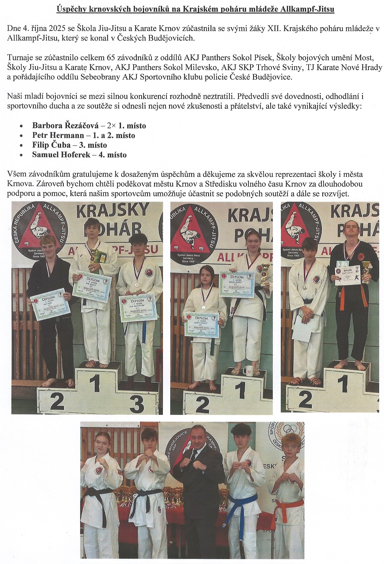 Krajský pohár mládeže Allkampf-Jitsu 4. 10. 2025